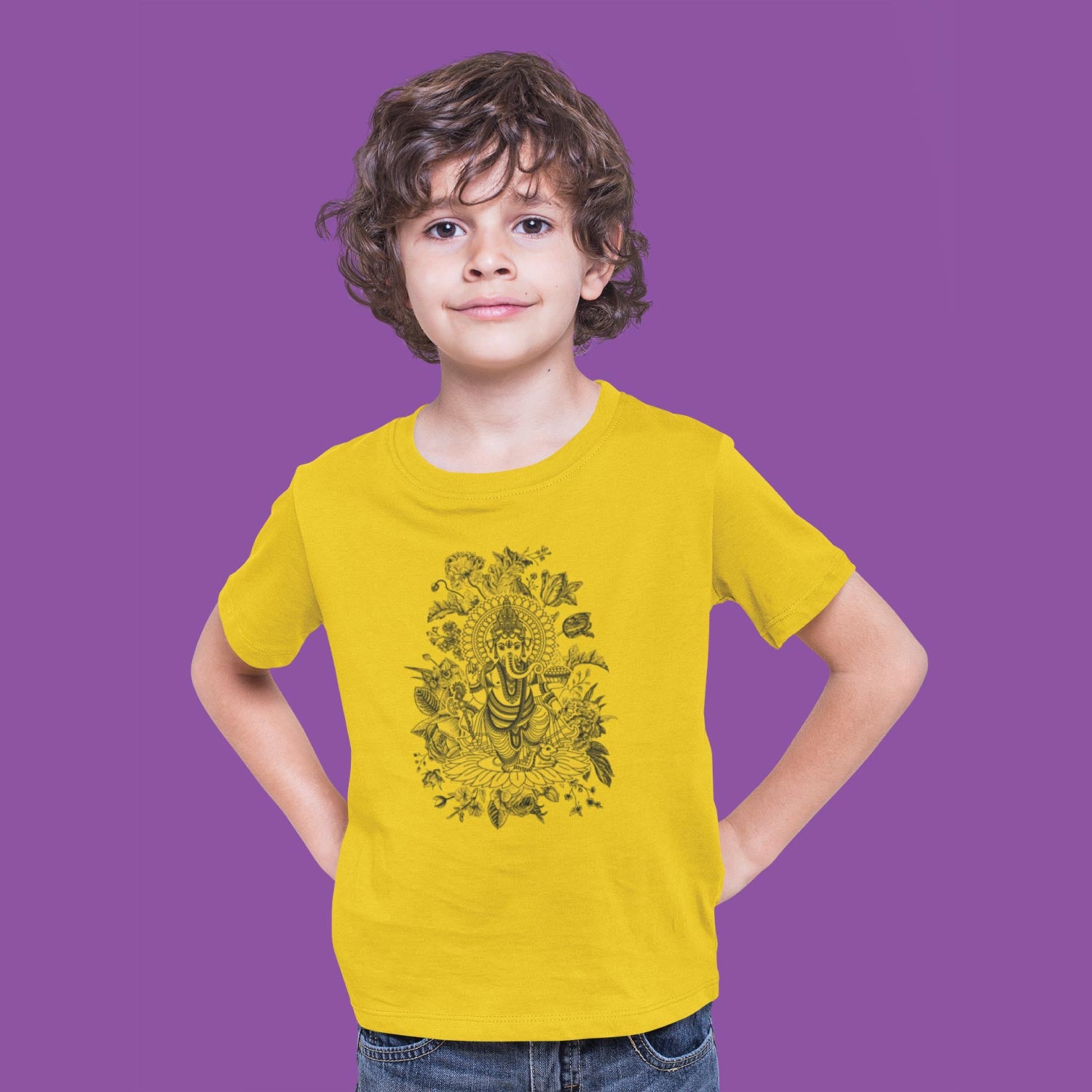 Floral Ganpati Kids Cotton Tee Everyday Wear – Tantra Original Since 1997 – Shipping Globally!