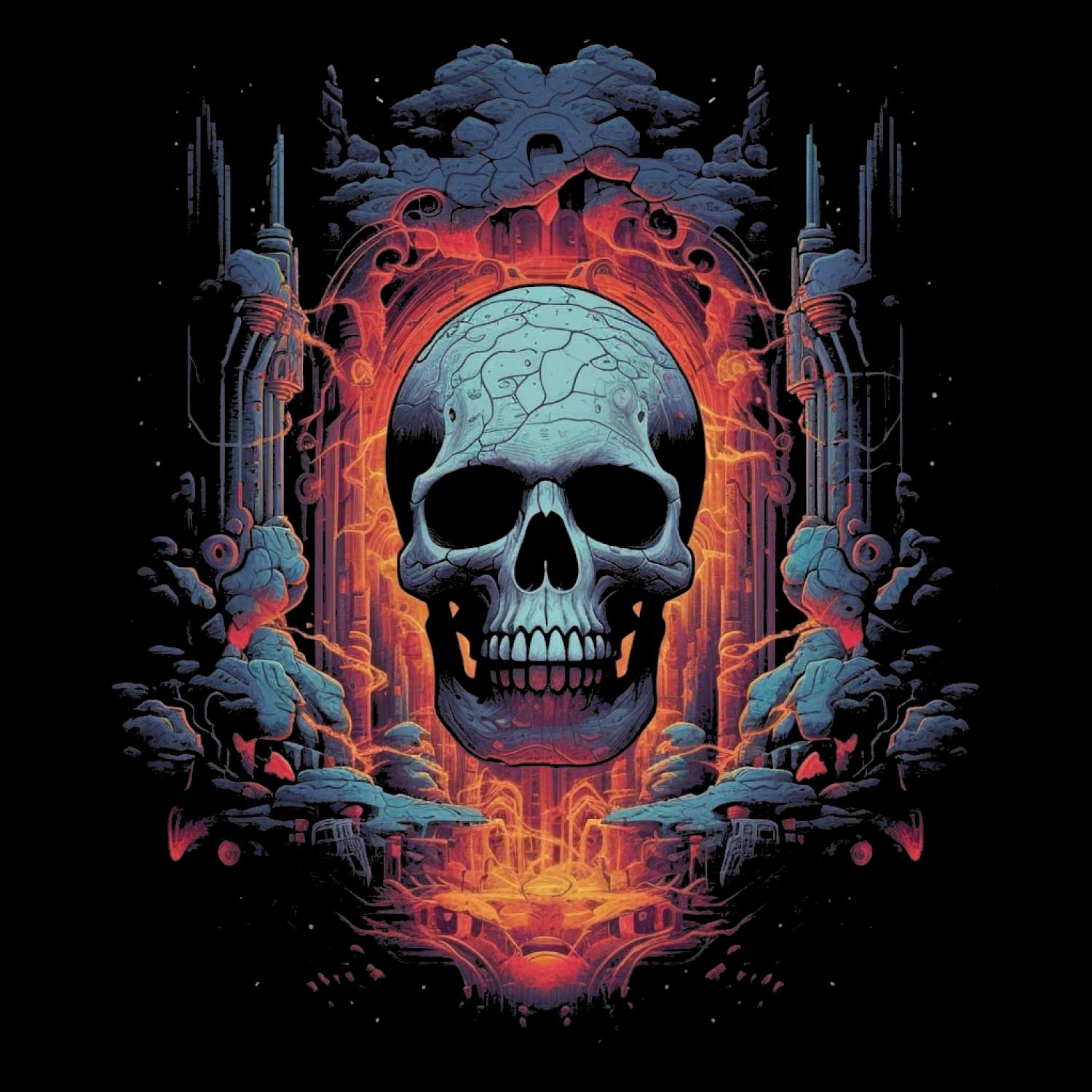 Skull Fire Oversize Back Print Tantra Original Brand Since 1997 Unisex Cotton T-Shirt